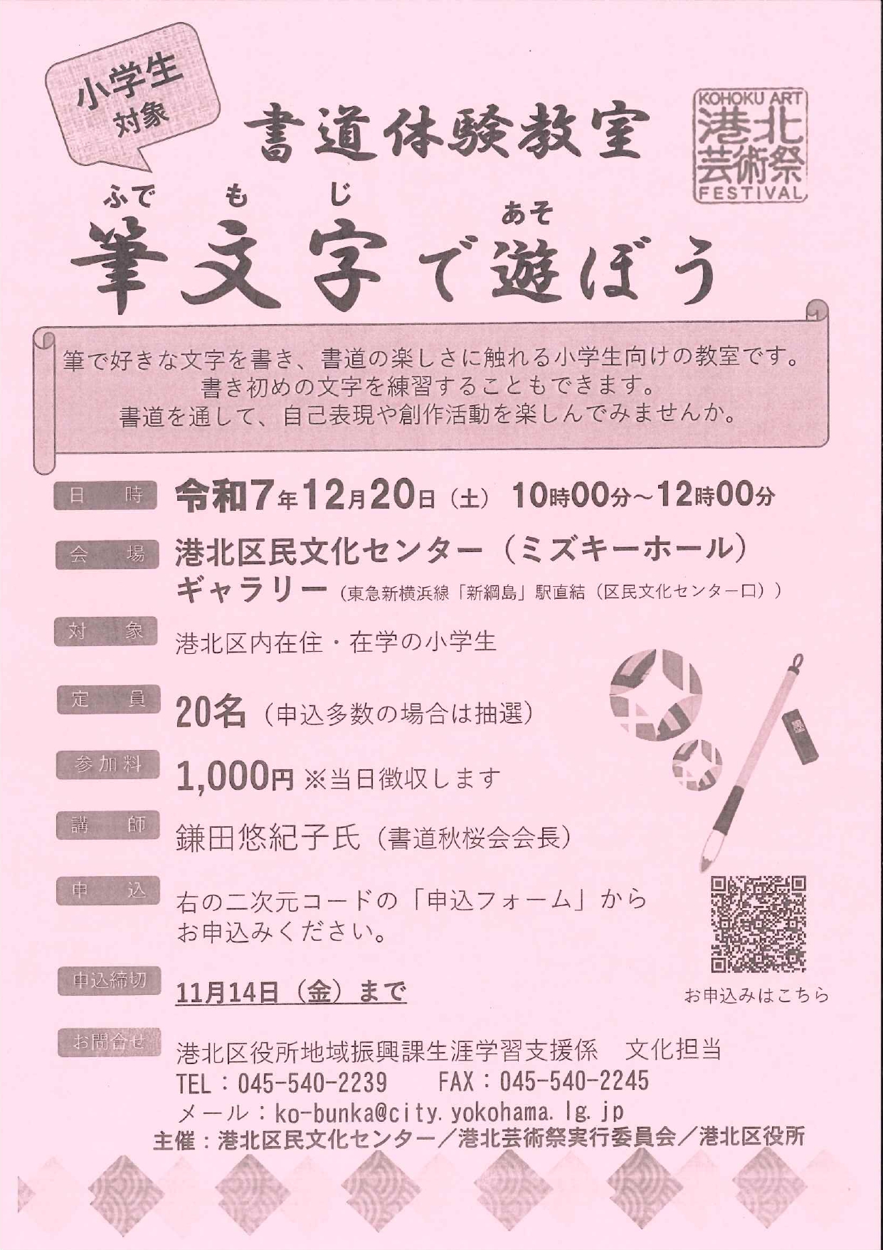 筆で好きな文字を書き、書道の楽しさに触れる小学生向けの教室で …