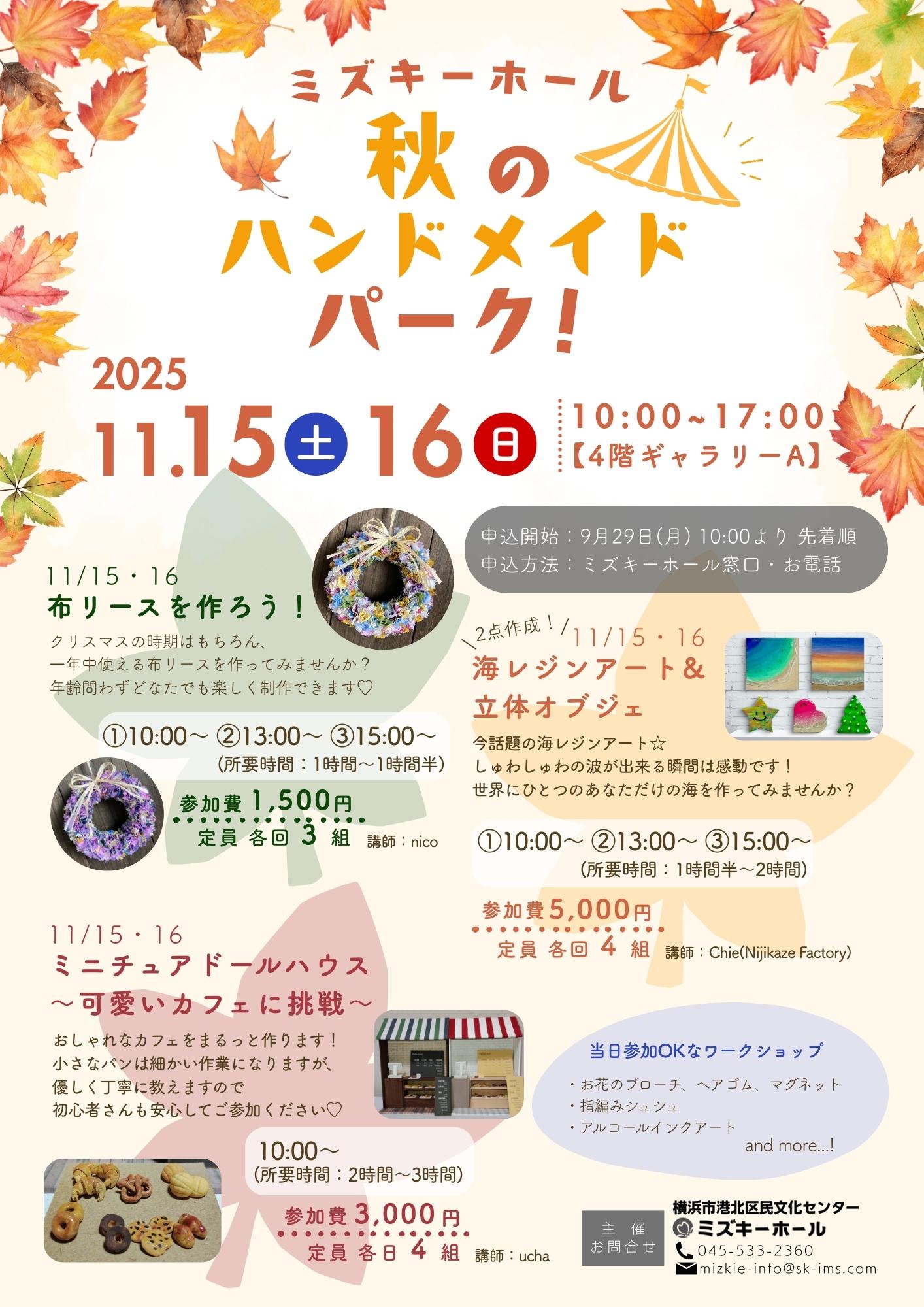 ミズキーホールで芸術の秋🍁🍂 秋のハンドメイドパーク! 可愛 …