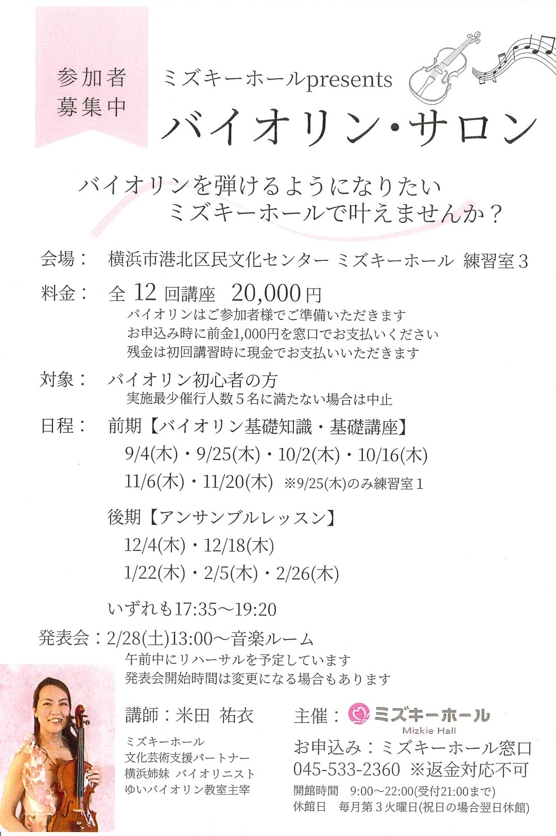 【ミズキーホールpresents🎻】バイオリン・サロン
