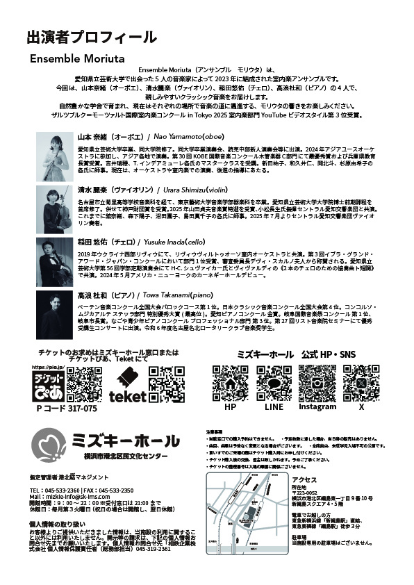 - 前売券 1,000円(ミズキーホール窓口、チケットぴあ、teketで2/20 10:00より発売)